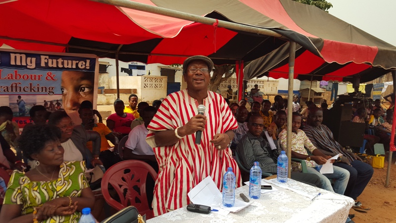 Challenging Height’s Representative Kofi Quansah popularly known as “Akofem”, a very committed opinion leader of the community who embarks on several rescue missions in Yeji in his message said, “I have never been to school but today I am happy to be part of the efforts in ending labour & trafficking to help children in this community to have an education”. The children are our assets, just like a cocoa farm to the farmer; the farms need some weeding to help the crops, just as education for a child. Therefore, education should be a prime to helping build a better future for the children. He further encouraged the community to bring him names of all children who are trafficked to Yeji and he would relocate them and bring them back to the Senya community.